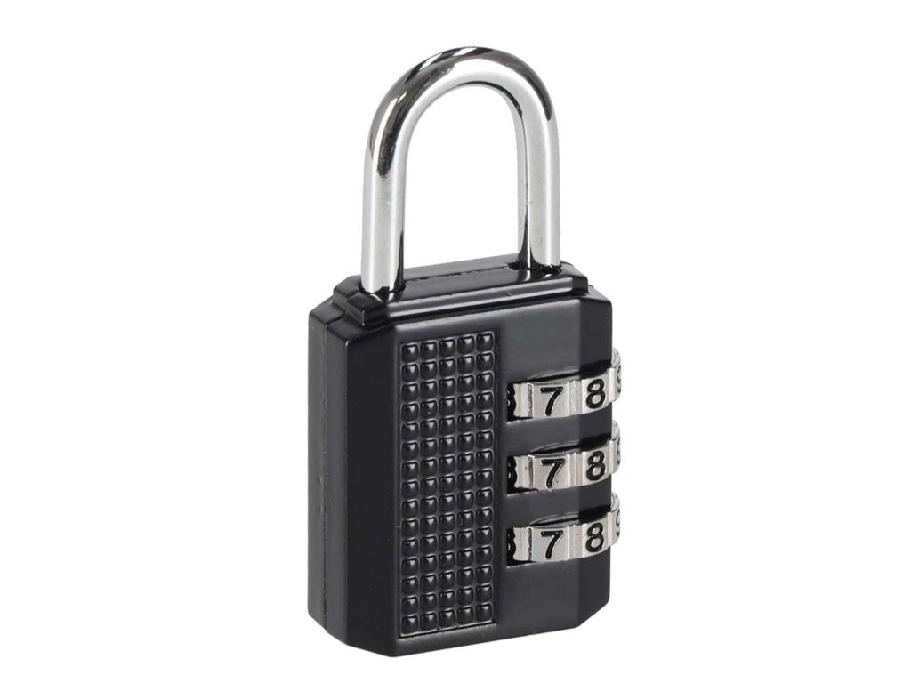 Visací zámek s kombinací, který ztěžuje přístup nežádoucích osob k našim zavazadlům.