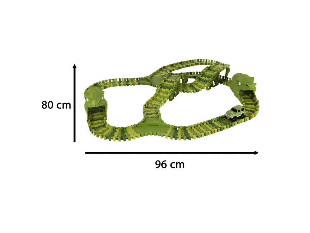 Velká závodní dráha, která malé návštěvníky přenese do kouzelné země plné zajímavých dinosaurů. Dráhu lze postavit různými způsoby - jediným omezením je vaše fantazie. Napájení: baterie. Rozměry autíček: 1,5 x 2,5 m: Rozměry: 9 cm x 5 cm x 5,5 cm.