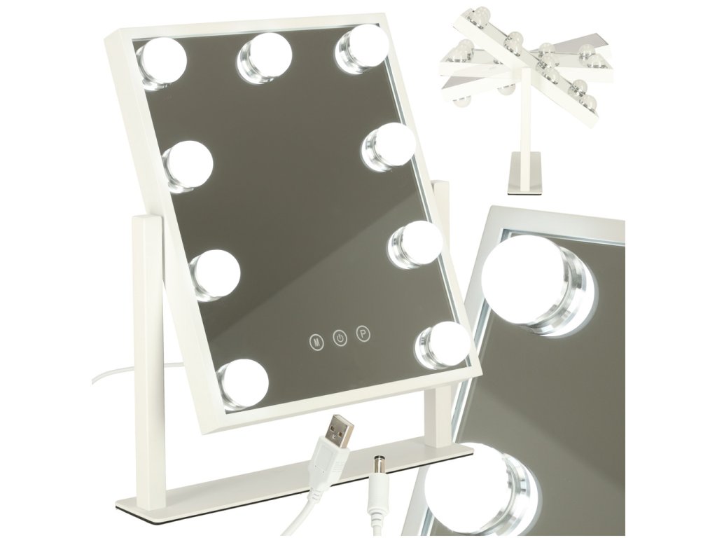 KOSMETICKÉ MAKE-UP ZRCADLO VEDLO STOJÍCÍ S 9 USB ŽÁROVKAMI 25X30CM
